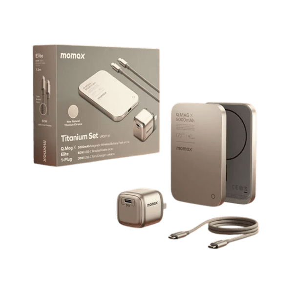 Momax Titanium Set VPD0131 Q.Mag X 5000 mAh Wireless Battery Pack with Cable Adapter
