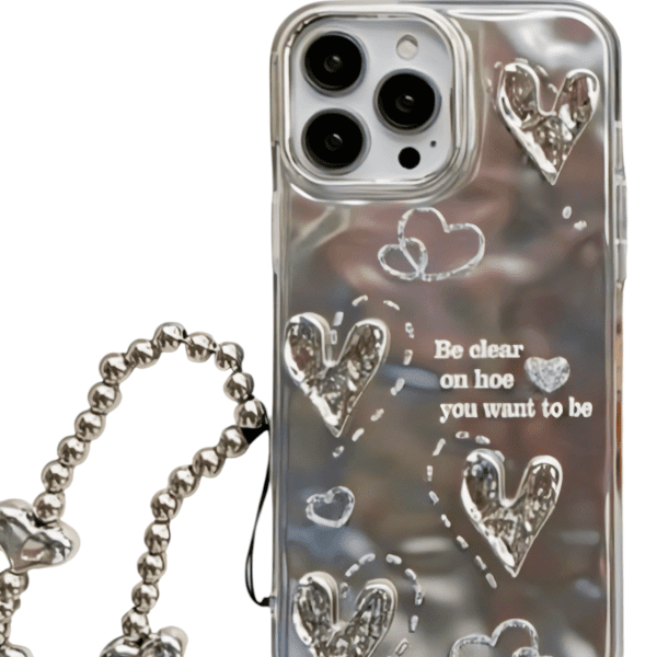 New silvery heart case with pendents Chain